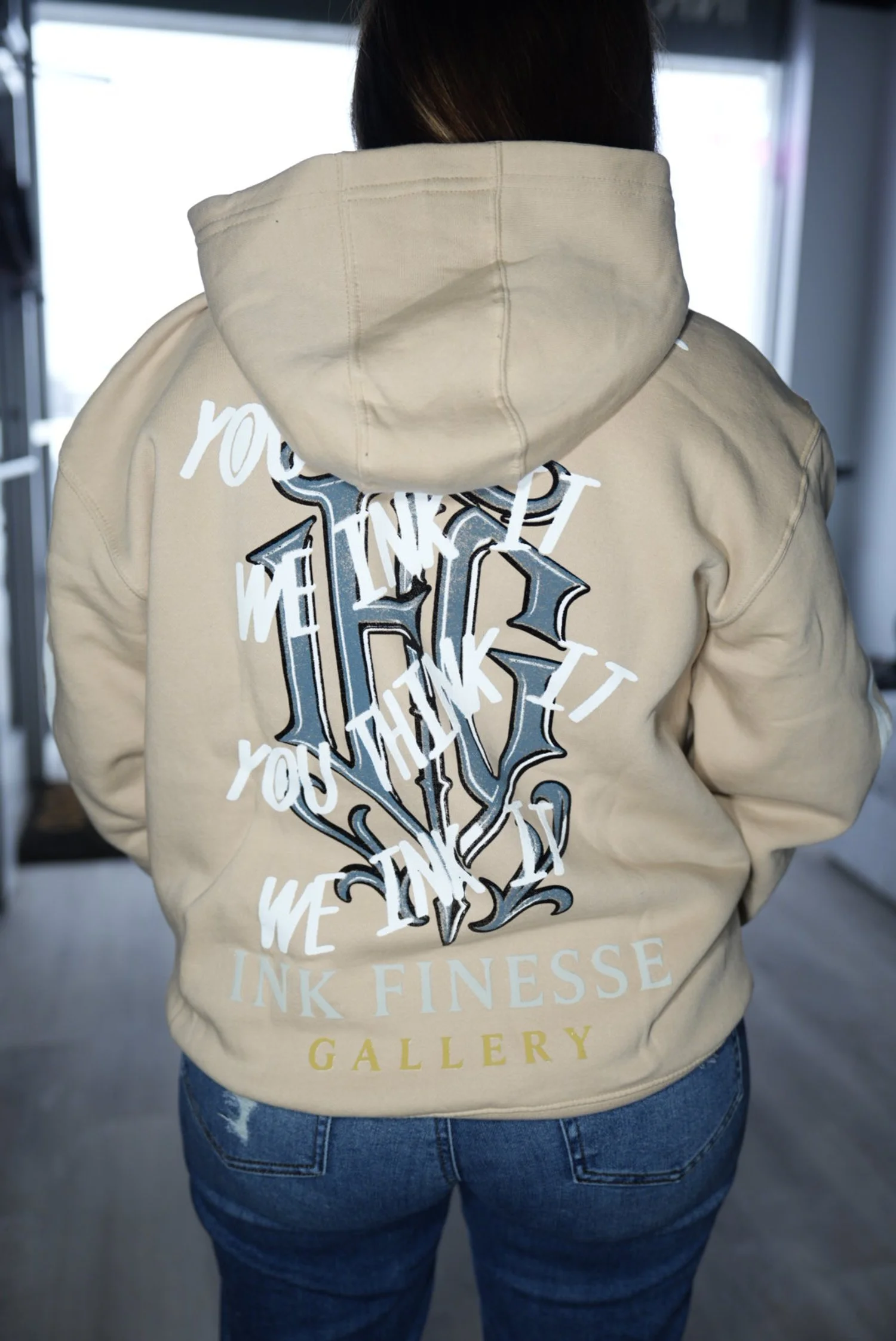 Our latest drop blends streetwear aesthetics with tattoo identity, featuring the IFG monogram, custom sleeve graphics, and our signature statement across the back: